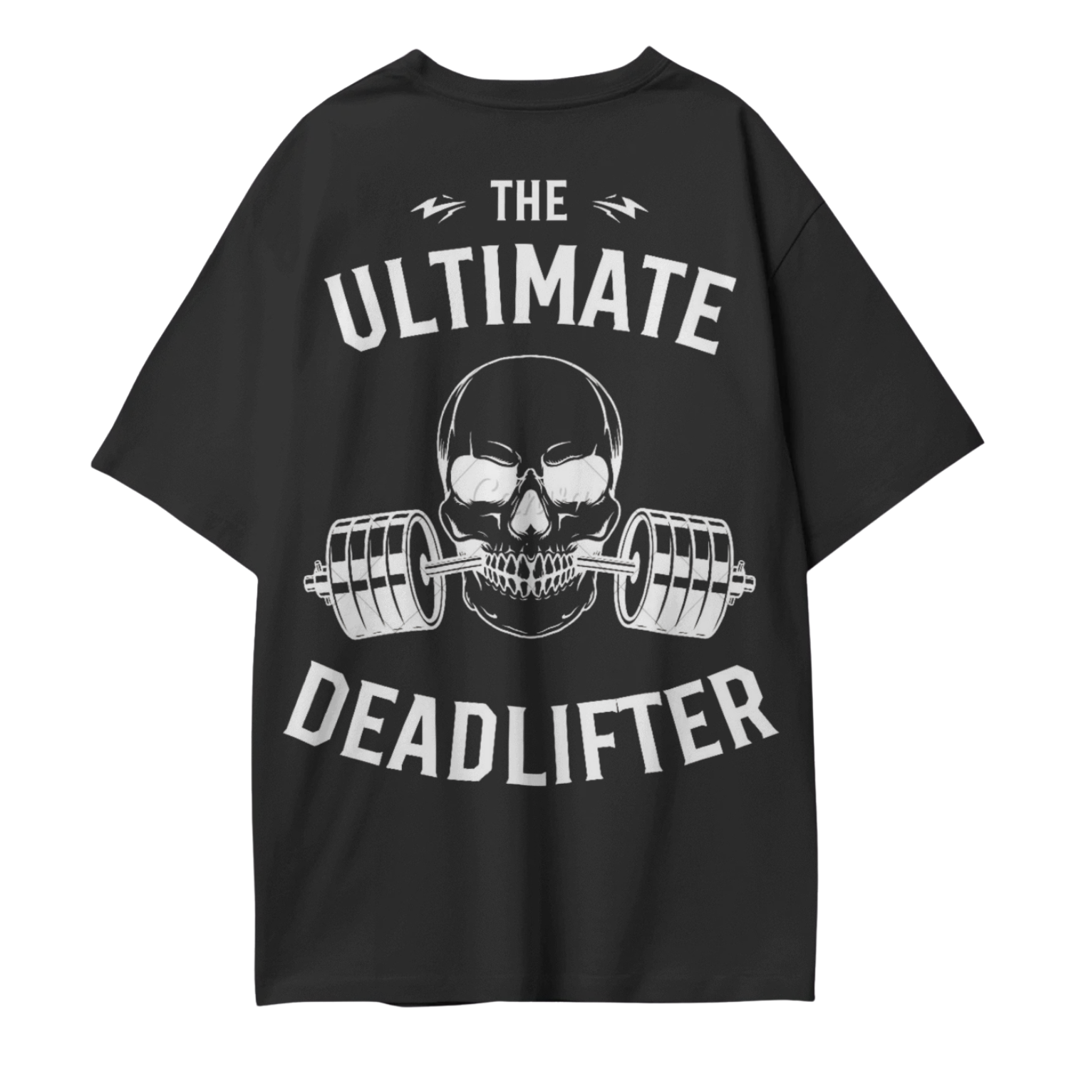 Crush your fitness goals in style with The 'Ultimate Deadlifter' Oversized Crew. This unisex tee features a bold skull and barbell graphic that screams gym dedication. Made from 100% pure cotton with a premium 180 GSM weight, it's soft, breathable, and built to last through intense training sessions. The oversized fit delivers that perfect slouchy silhouette with extra length and sleeve drop for maximum comfort both in and out of the gym. Available in striking black with a high-impact, non-fading print. Your new favorite gym-to-street essential.