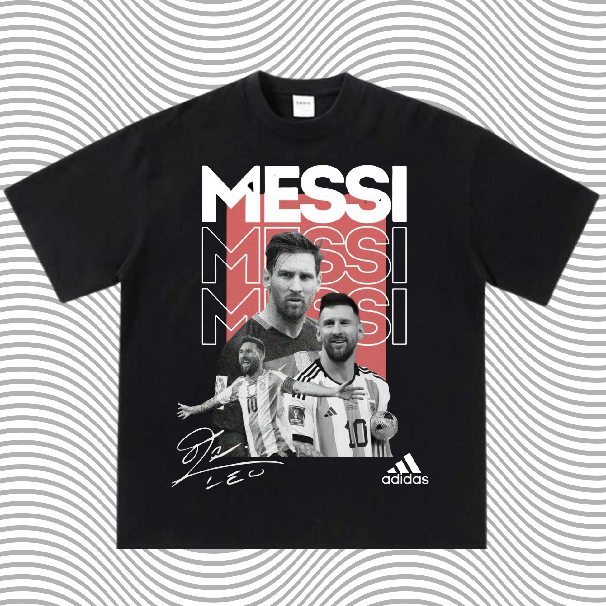 Step into the legend with the Messi Montage Legacy Tee, a unisex oversized premium shirt that celebrates the magic of Lionel Messi like no other. Flaunting a dazzling, high-definition graphic montage that captures Leo’s most unforgettable moments and expressions, this tee is a vibrant tribute layered with his printed signature and bold 'MESSI' typography for that authentic fan vibe. Made from soft, 100% cotton fabric at a comfy 180 GSM weight, it drapes perfectly without feeling bulky. The oversized fit adds a cool, relaxed feel with extra length and dropped sleeves, mixing street style with ultimate comfort. Available in classic shades like Black, Navy Blue, Grey Melange, and subtle Light Baby Pink, it’s a fan’s dream come true. Easy to care for, just wash inside out and low dry to keep every detail sharp. Whether you’re cheering from the stands or just showing off your fandom, this tee lets you wear the legacy loud and proud!